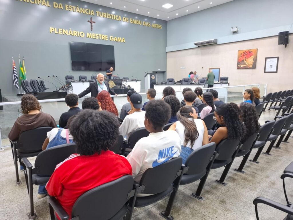 Visita de alunos na câmara de Embu das Artes. Projeto de cursinho foi barrado na casa @Câmara Municipal de Embu das Artes/ Divulgação