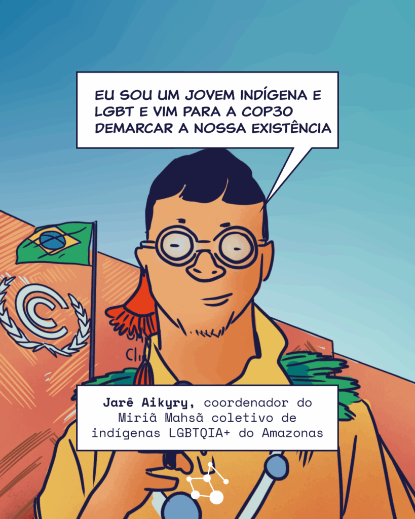 Políticas de adaptação e mitigação climáticas que cheguem para além dos centros das cidades e incluam diferentes culturas, orientações sexuais e gêneros. Essa é a demanda levada à COP30 pelo jovem Jarê Aikyry, coordenador do Miriã Mahsã, coletivo de indígenas LGBTQIAP+ do Amazonas e morador da periferia de Manaus.